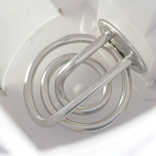 Como ya supondrás, la resistencia está en contacto directo con la corriente eléctrica mediante un enchufe. Siguiendo el efecto Joule, los electrones van rebotando por el conductor y en el proceso generan energía térmica. Esa pasará al propio líquido del contenedor.